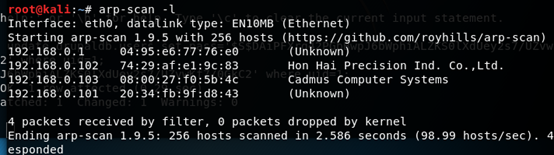 两个虚拟机在同一网段下,可以使用nmap扫描网段发现dc1的IP,也可以用arp-scan、netdiscover等,我用的是arp-scan