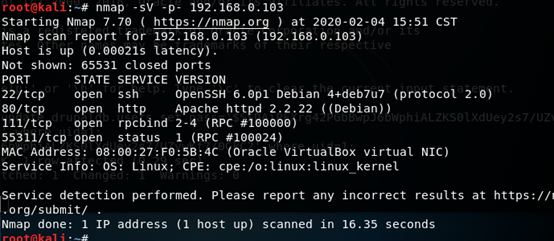 找到了DC1的IP:192.168.0.103,使用nmap扫一下端口,发现开放了80端口