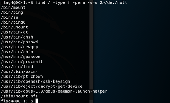 最后一个flag在root文件夹下,现在没有权限,根据上一个flag的提示要使用find提权,提权暂时还在研究中,先借鉴其他人的~~