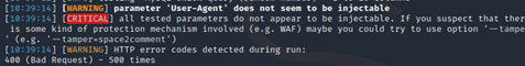 sqlmap -r target.txt --random-agent --level 5 --risk 3