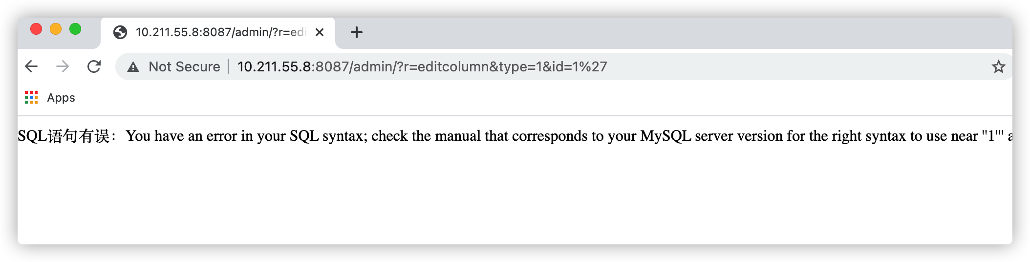 这个就很明显了,先判断type的值,然后get到的id值直接拼接到sql语句中执行,很明显是存在注入的