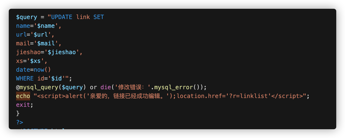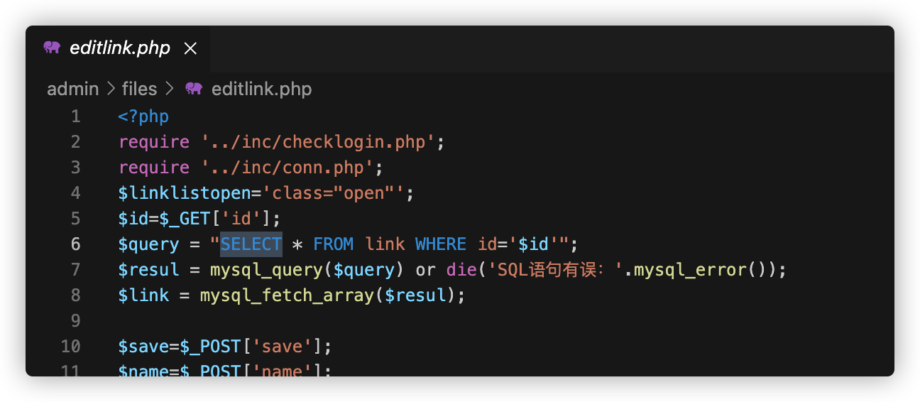 下面的editlink.php也是一样的情况,也是一个后台的注入