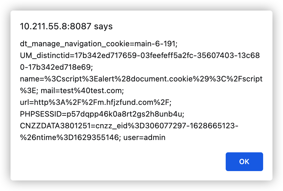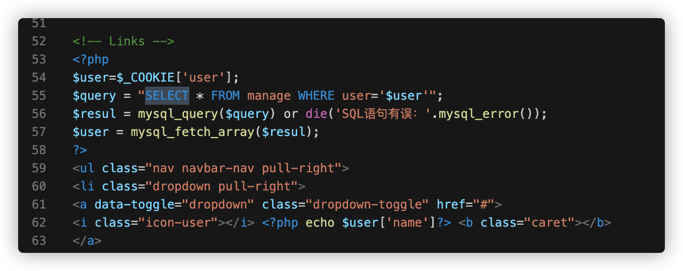 通过获取cookie中user的值,然后拼接到sql语句中查询