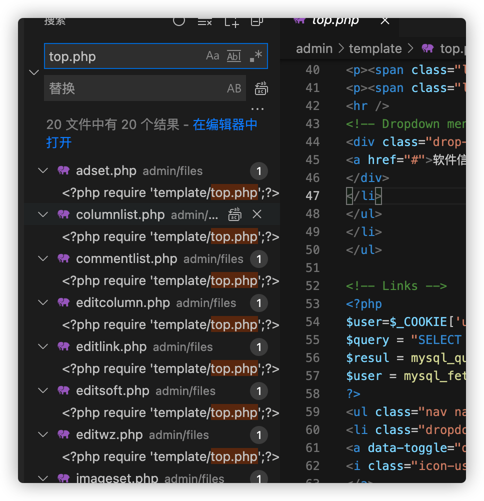 直接访问好像也不行,可能是模版文件之类的,(我也不太懂,轻喷)然后我就找那些文件包含了top.php