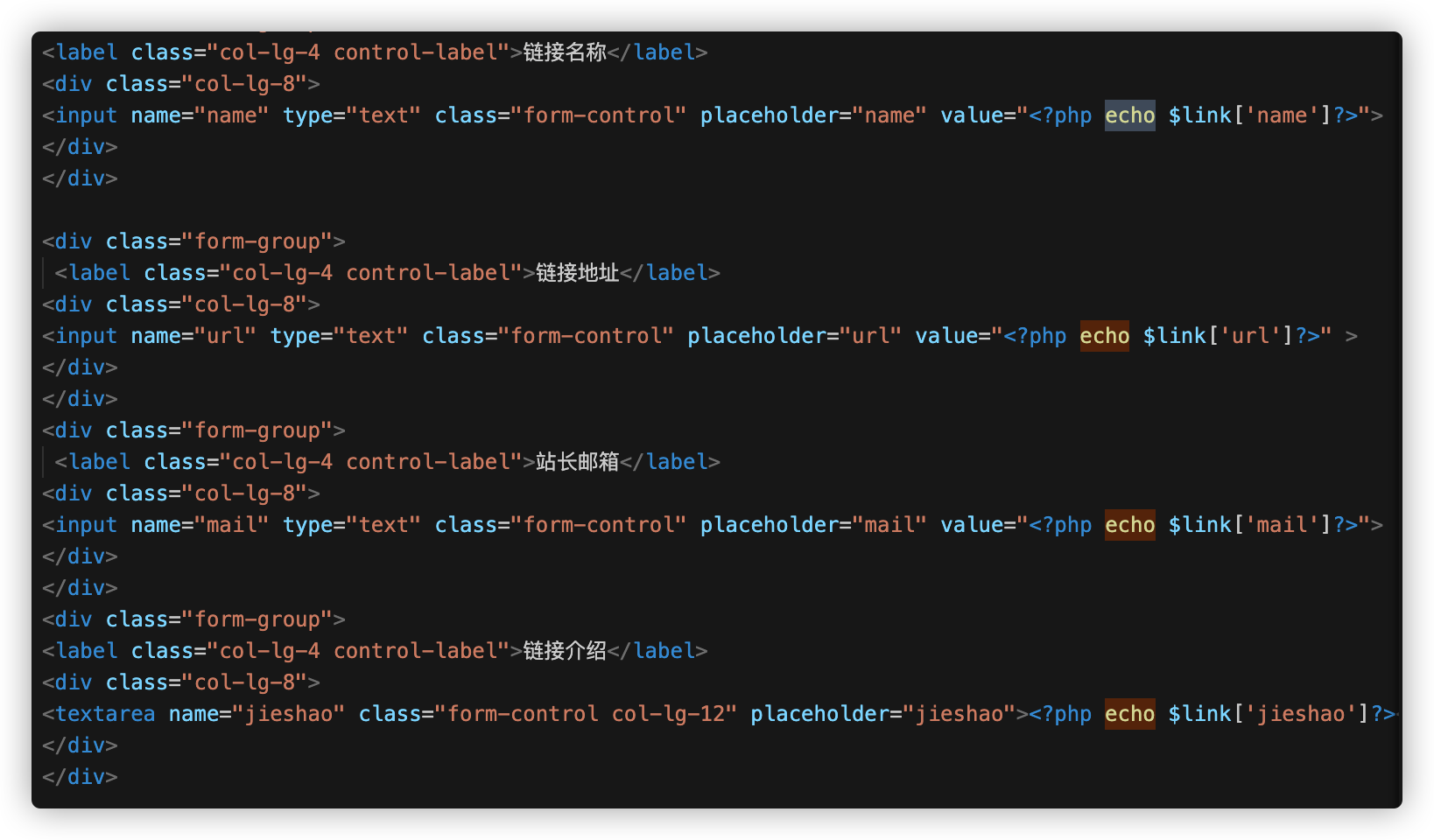 在一个editlink.php中发现echo了好几个东西