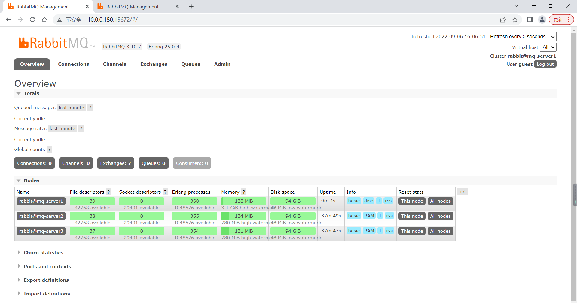 rabbit@mq-server1: RabbitMQ 3.10.7 on Erlang 25.0.4