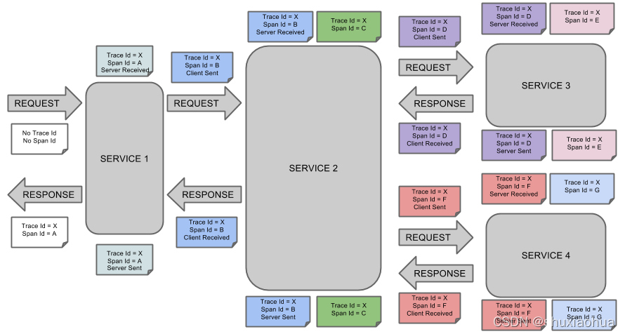 Sleuth将一个完整的request定义为一个trace,而每经过一个服务则会生成一个span,附加到trace下,形成对这个request的链路追踪