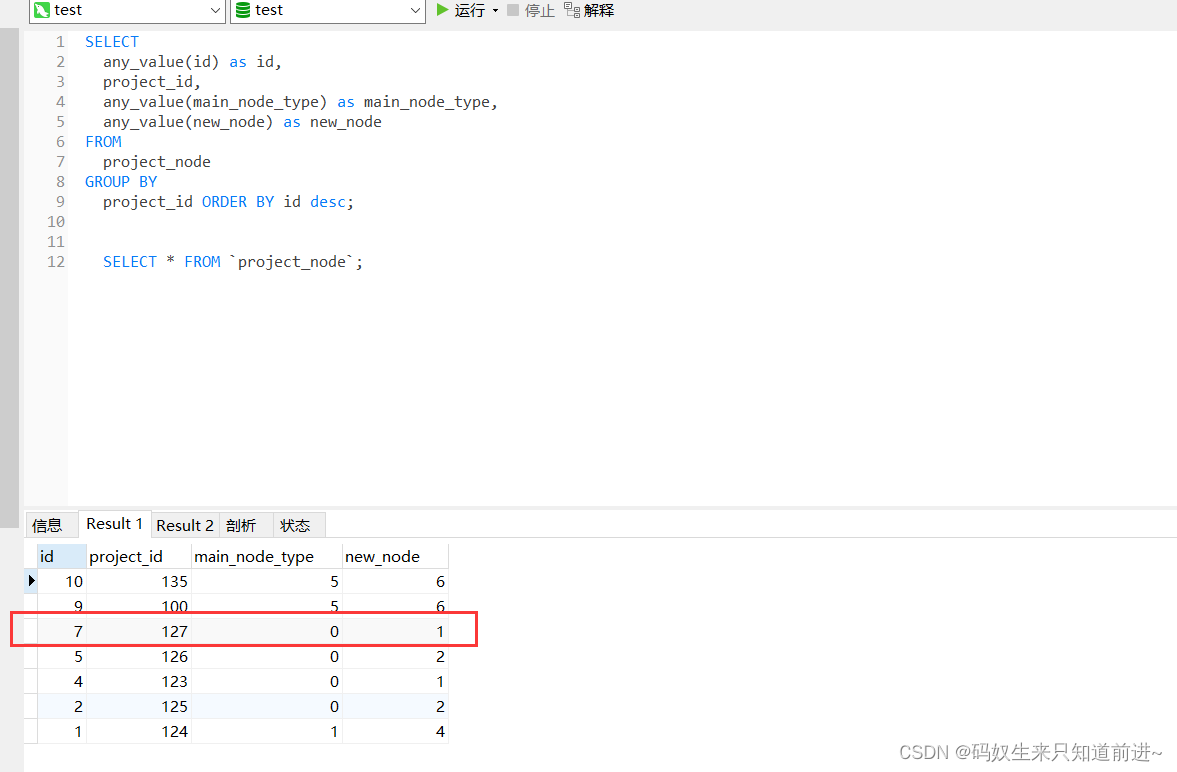 重点:any_value()会选择被分到同一组的数据里第一条数据的指定列值作为返回数据