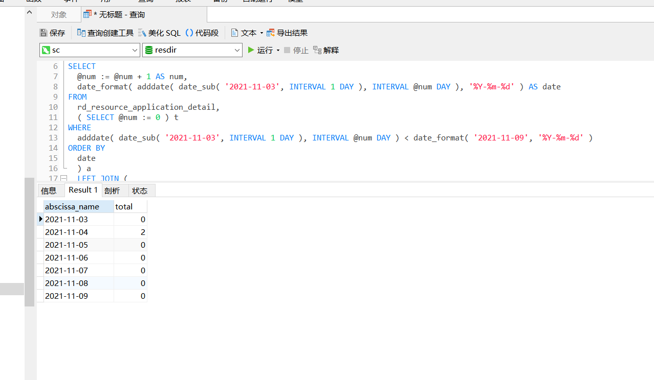 ( SELECT @cdate := DATE_ADD( '2021-11-05', INTERVAL + 1 DAY ) FROM rd_resource_application_detail ) t0