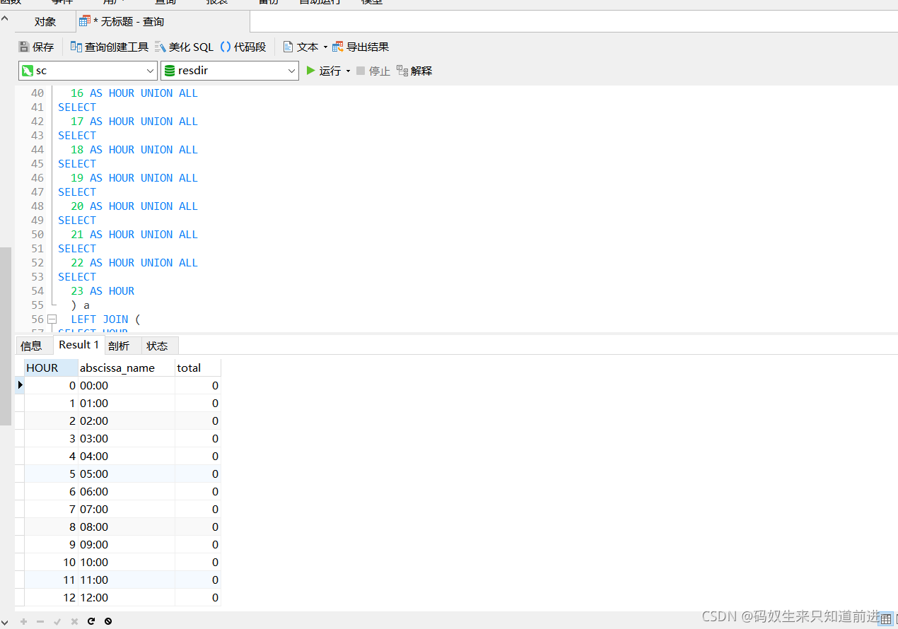 3、统计某天的24小时的数据,没有的赋值为0