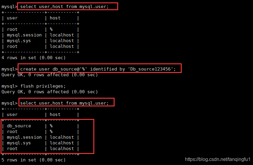 可以创建用户:create user db_source@'%' identified by 'Test123456';