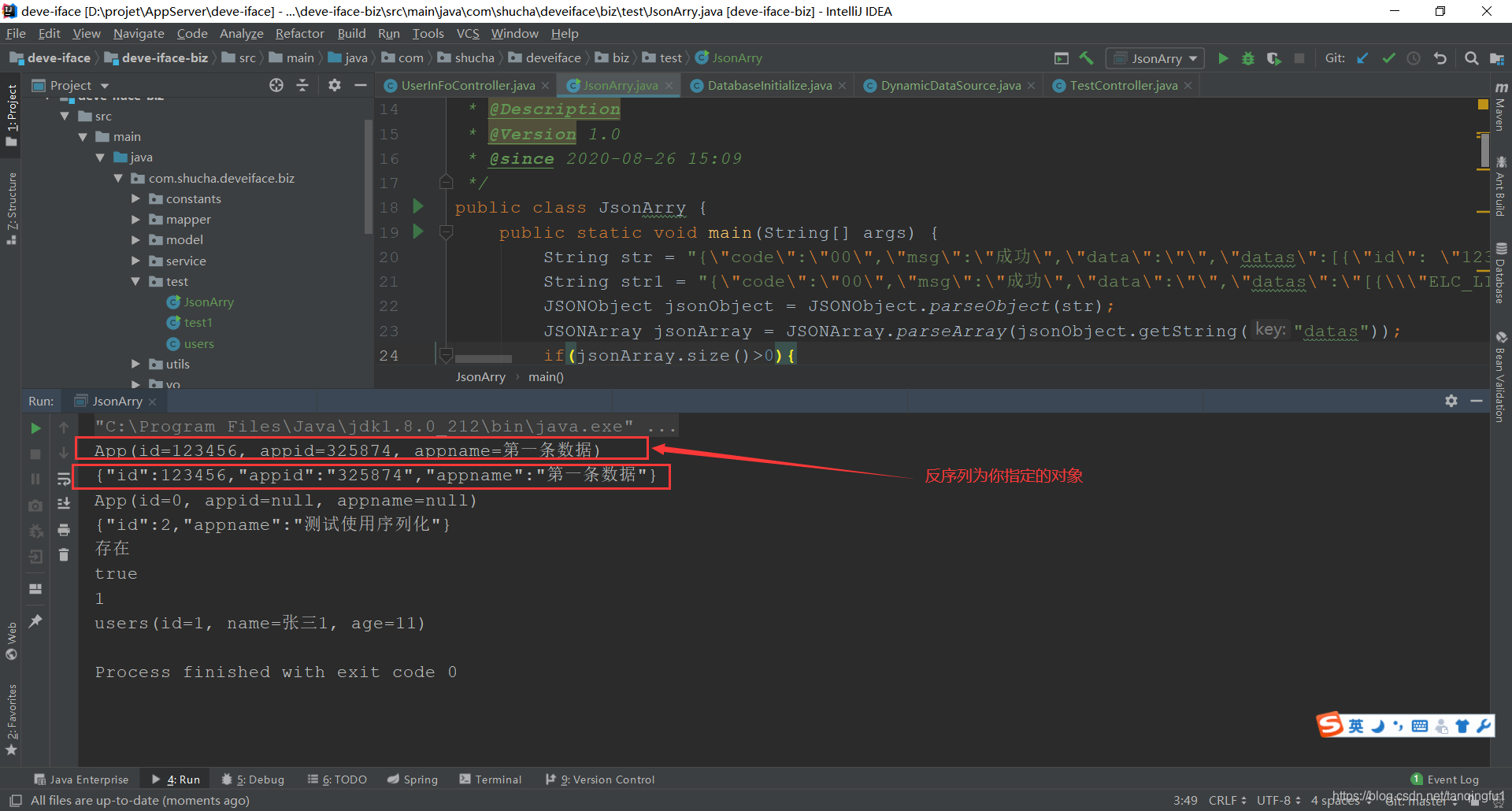 String str = "{\"code\":\"00\",\"msg\":\"成功\",\"data\":\"\",\"datas\":[{\"id\": \"123456\",\"appid\": \"325874\",\"appname\": \"第一条数据\"}]}";