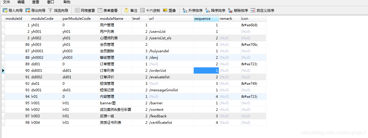 `sequence` int(11) DEFAULT NULL COMMENT '权限排序',