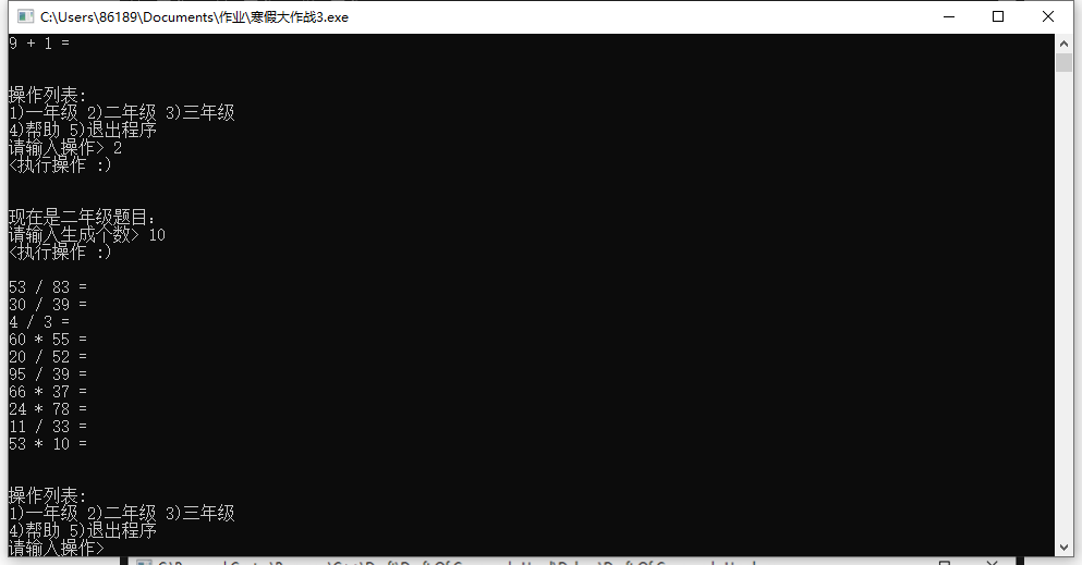 case 3:printf("现在是三年级题目:\n");