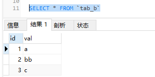 INSERT into tab_a(id,val) ( select 4,'a' UNION select 5,'b' ) 结果为: > 1064 -You have an error in your SQL syntax; check the manual that corresponds to your MySQL server version for the right syntax to use near 'UNION select 5,'b' )' at line 4 修改为: INSERT into tab_a(id,val) values(4,'a'),(5,'b')