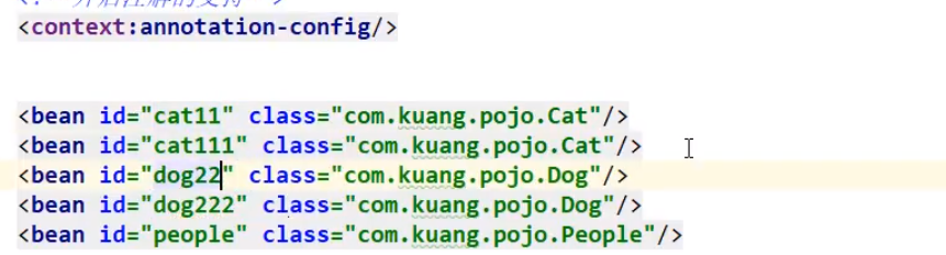 <!-- 一个bean相当于一个对象(new Hello())-->