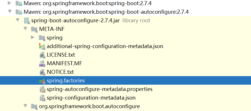 spring.factories所有的自动配置类都在这里,但是不一定生效,因为需要满足ConditionalOnClass()里面所有的条件,其中就必须包括启动类,只有导入了相关的star启动器,这些自动装配的包才有效