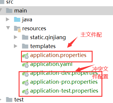 #启动配置是dev文件为主,也包括devDB,devMVC文件,有冲突了按照dev文件配置执行,如果dev没有配置则最后文件执行的属性会覆盖前面文件(不包括主文件)冲突的属性