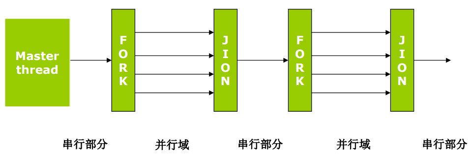 Fork:主线程创建一个并行线程队列,然后,并行域中的代