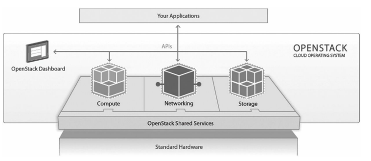 OpenStack 是一个云计算操作系统,它仅仅通过一个使用Web交互接口的控制面板 (Dashboard)来管理一个或多个数据中心的所有计算资源池、存储资源池、网络资源池 等硬件资源。OpenStack的作用是整合各种底层硬件资源,为系统管理员提供Web界面的 控制面板,以方便资源管理,为开发者的应用程序提供统一管理接口API,为终端用户提 供无缝的透明的云计算服务。OpenStack在云计算软硬件架构的主要作用与一个操作系统类似。