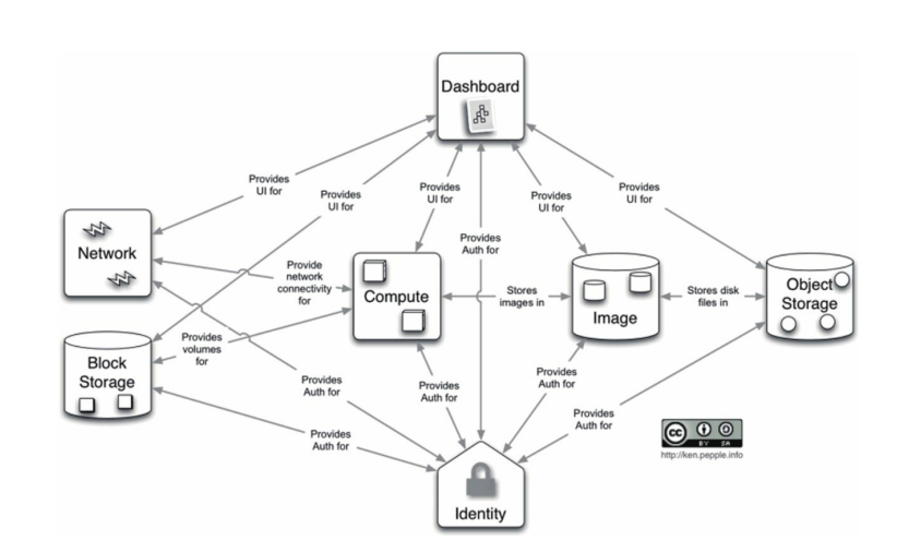 OpenStack包含6个核心服务:计算、对象存储、块存储、镜像、网络、身份认证,也 包含10多个可选服务,如控制面板、编排服务、消息服务、数据库服务等。