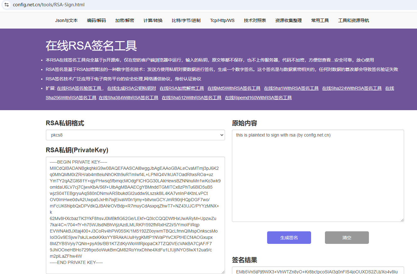 RSA签名在线测试工具--支持rsa+不同哈希算法的签名