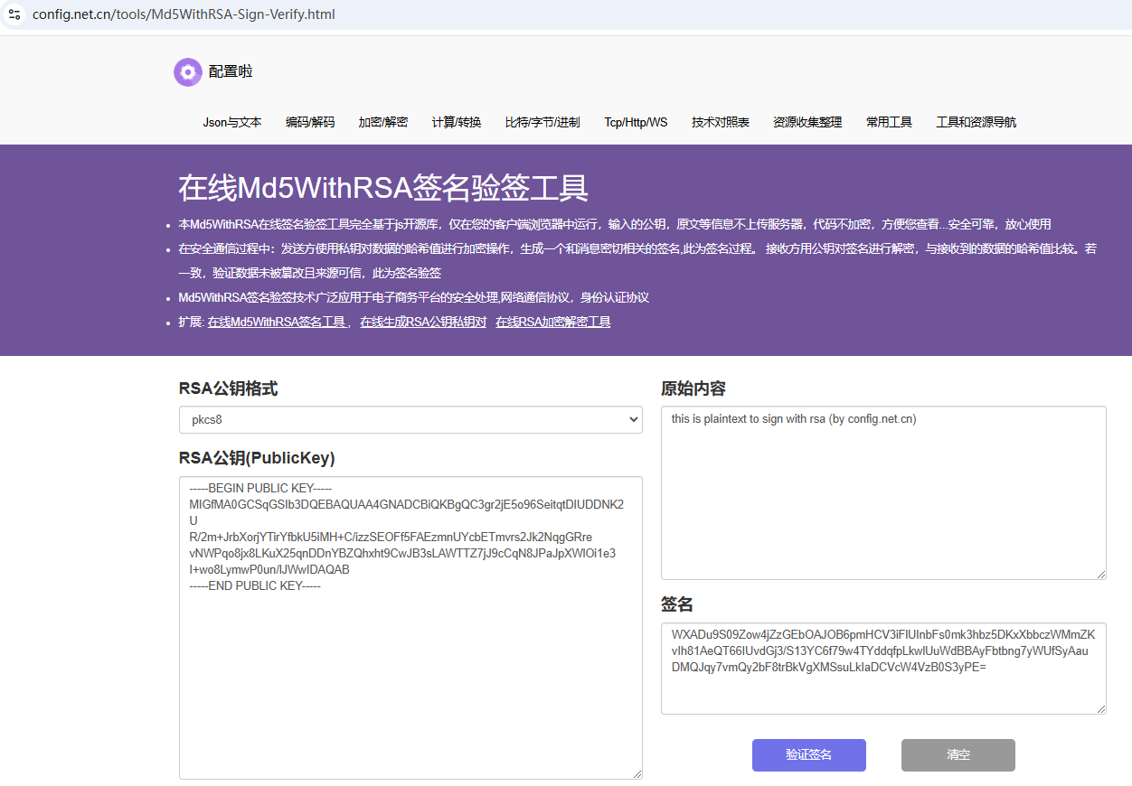 https://config.net.cn/tools/Md5WithRSA-Sign-Verify.html