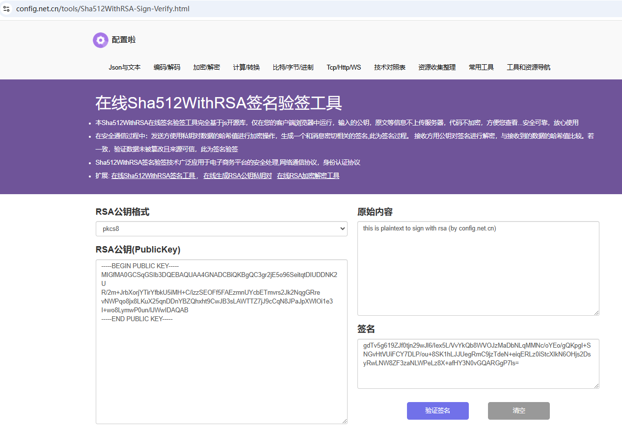 https://config.net.cn/tools/Sha512WithRSA-Sign-Verify.html