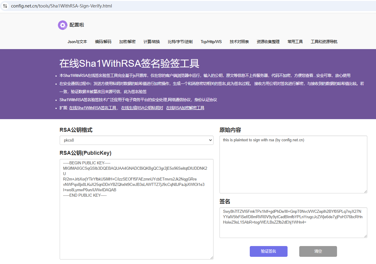 https://config.net.cn/tools/Sha1WithRSA-Sign-Verify.html