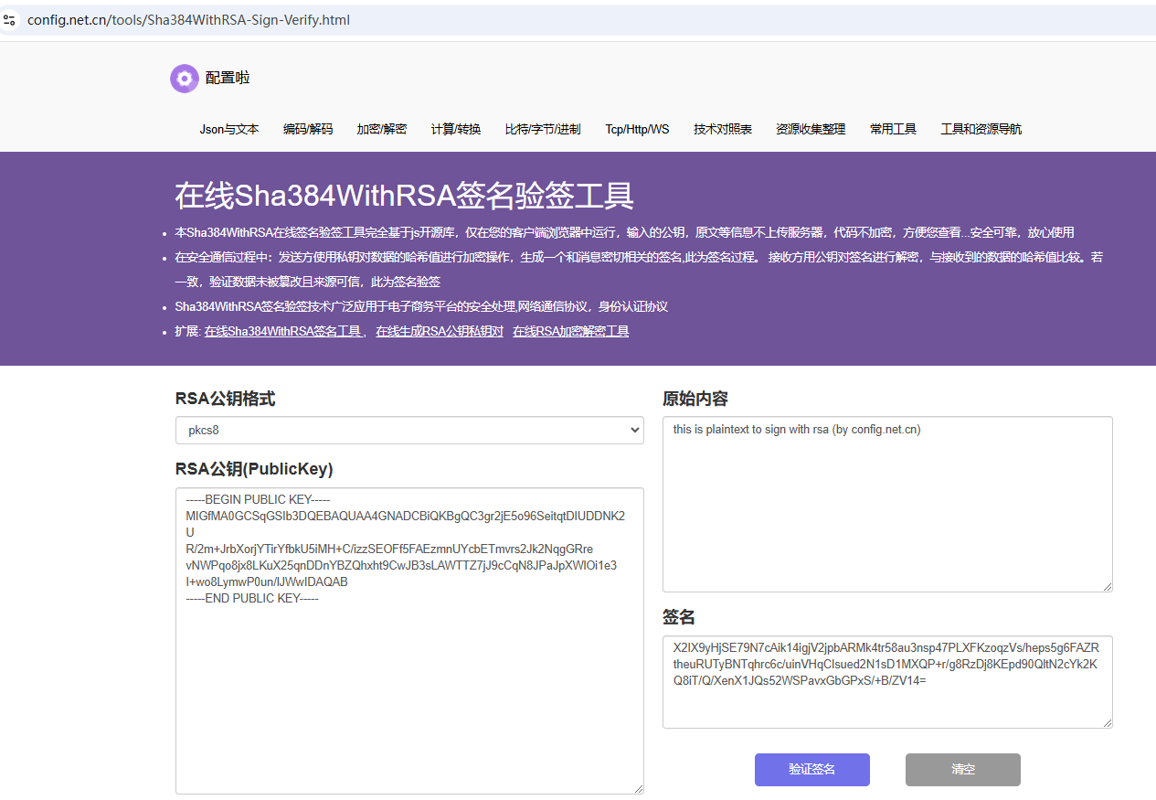https://config.net.cn/tools/Sha384WithRSA-Sign-Verify.html
