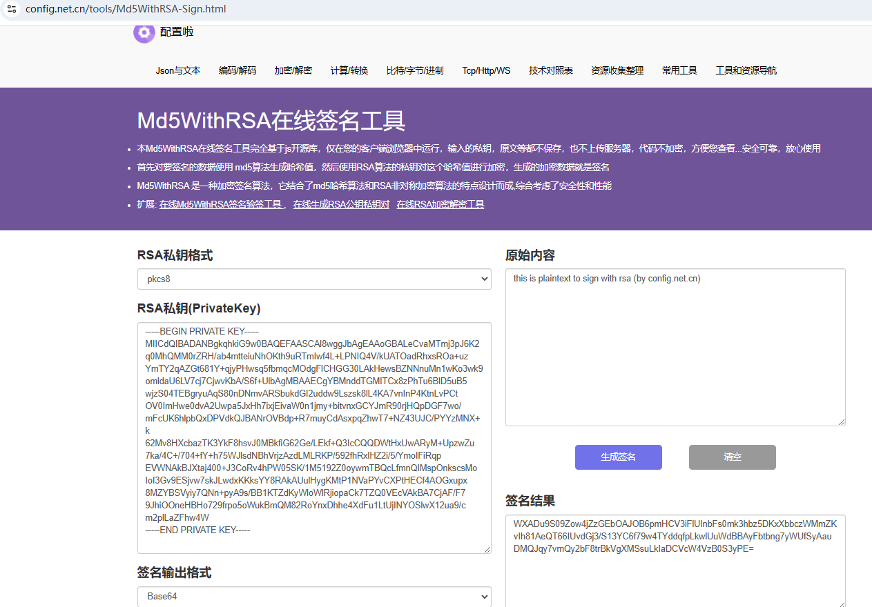 https://config.net.cn/tools/Md5WithRSA-Sign.html