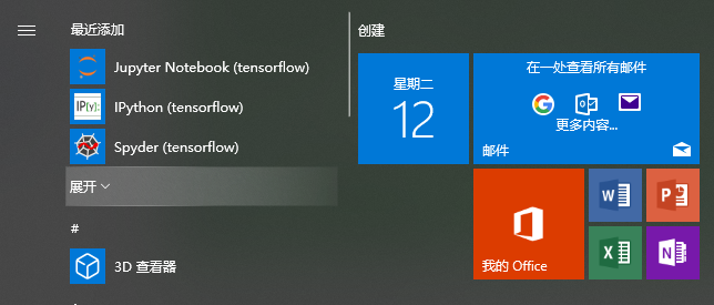 不仅如此,在开始菜单栏里面还有tensorflow安装的三个插件,我们可以把插件放到桌面上!