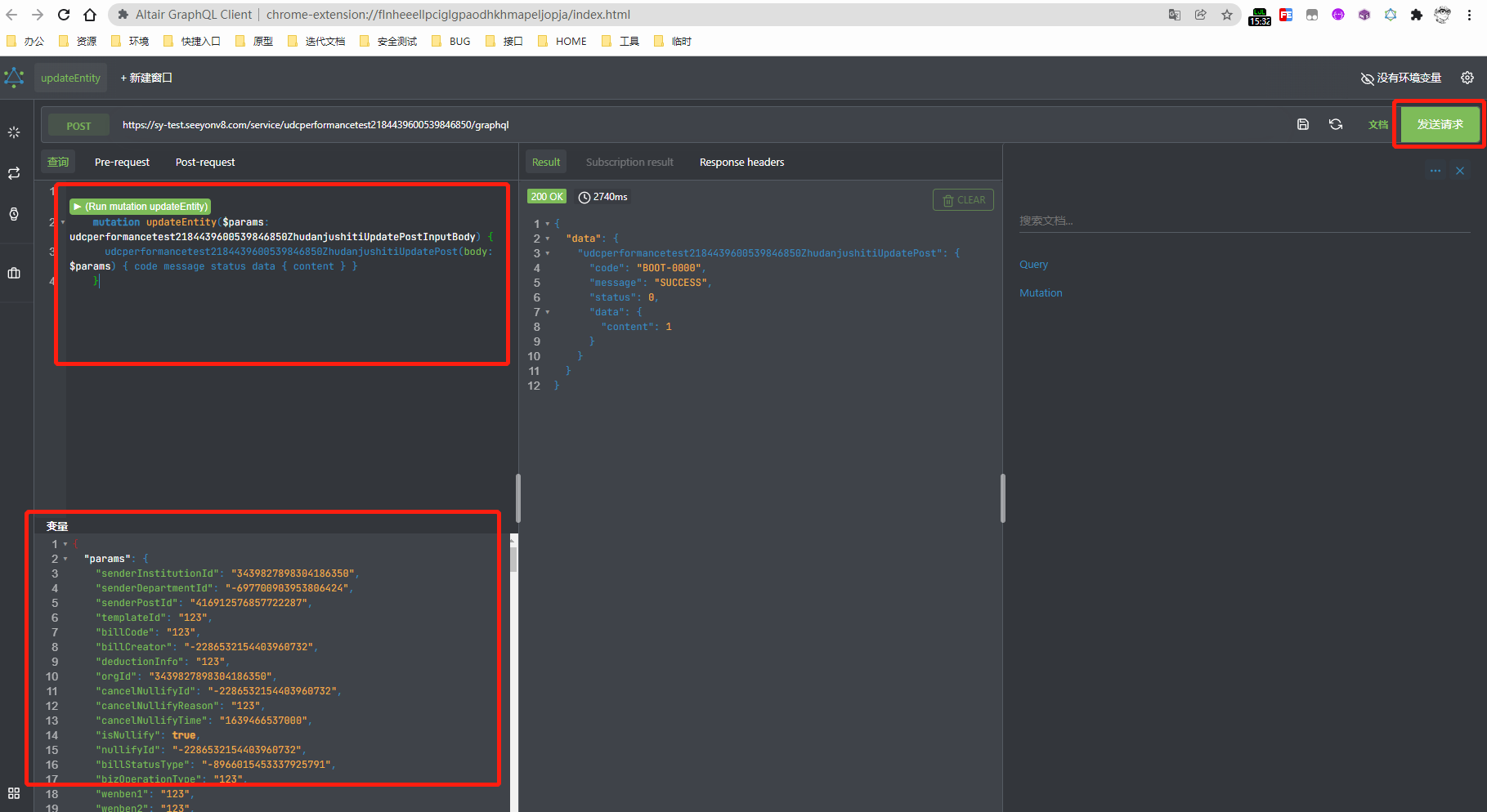 使用:然后就可以在graphql助手上输入参数和变量发起请求了