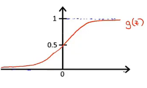 如果用拟合的算法对分类的数据进行分类,实际效果不是很理想。所以需要分类的数据我们用分类的算法比较合适,Logistic回归算法(也叫sigmoid函数)就是一种分类算法。 - 分类算法的预测函数:其中 \(\theta^{T} x\) 就是归回预测函数中的多项式\[h_{\theta}\left ( x \right )=\frac{1}{1+e^{-\theta^{T} x}} \]图像如下:图像横坐标是 \(\theta^{T} x\) ,不是 \(x\)