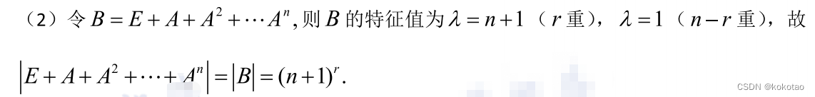 法二:因为矩阵满足A^2=A,所以 A^2α=Aα ;λ^2α=λα;(λ^2-λ)α=0;→得A的特征值λ=1和λ=0;