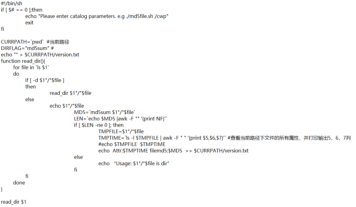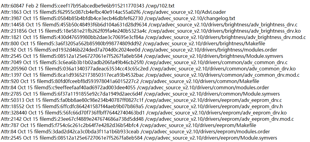 将/cwp目录下所有文件的大小、上传日期、md5sum码,目录导出到version.txt文本中