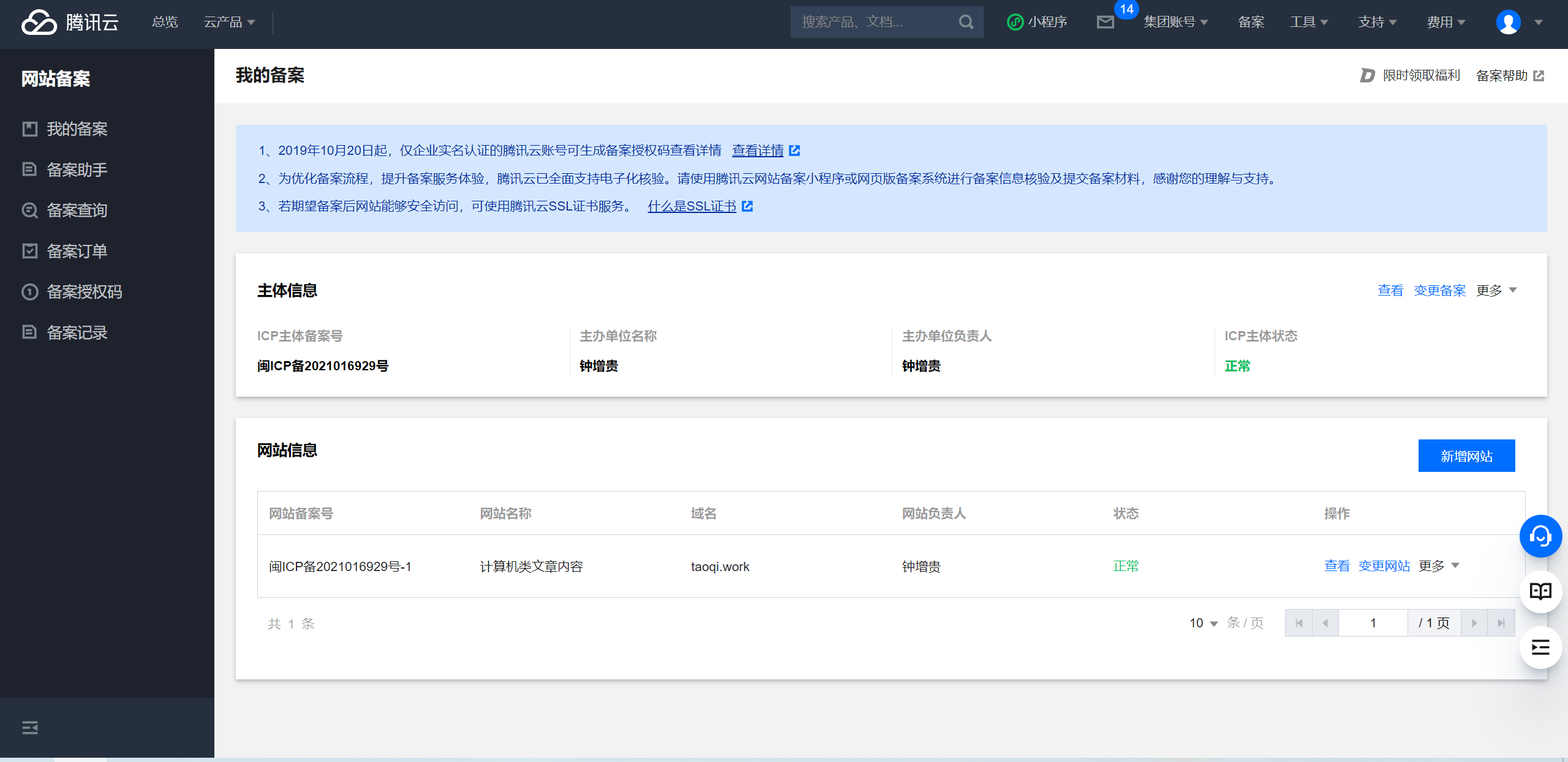 购买域名并且进行备案(备案的时间各个地方不同,我这边备案用了一周)