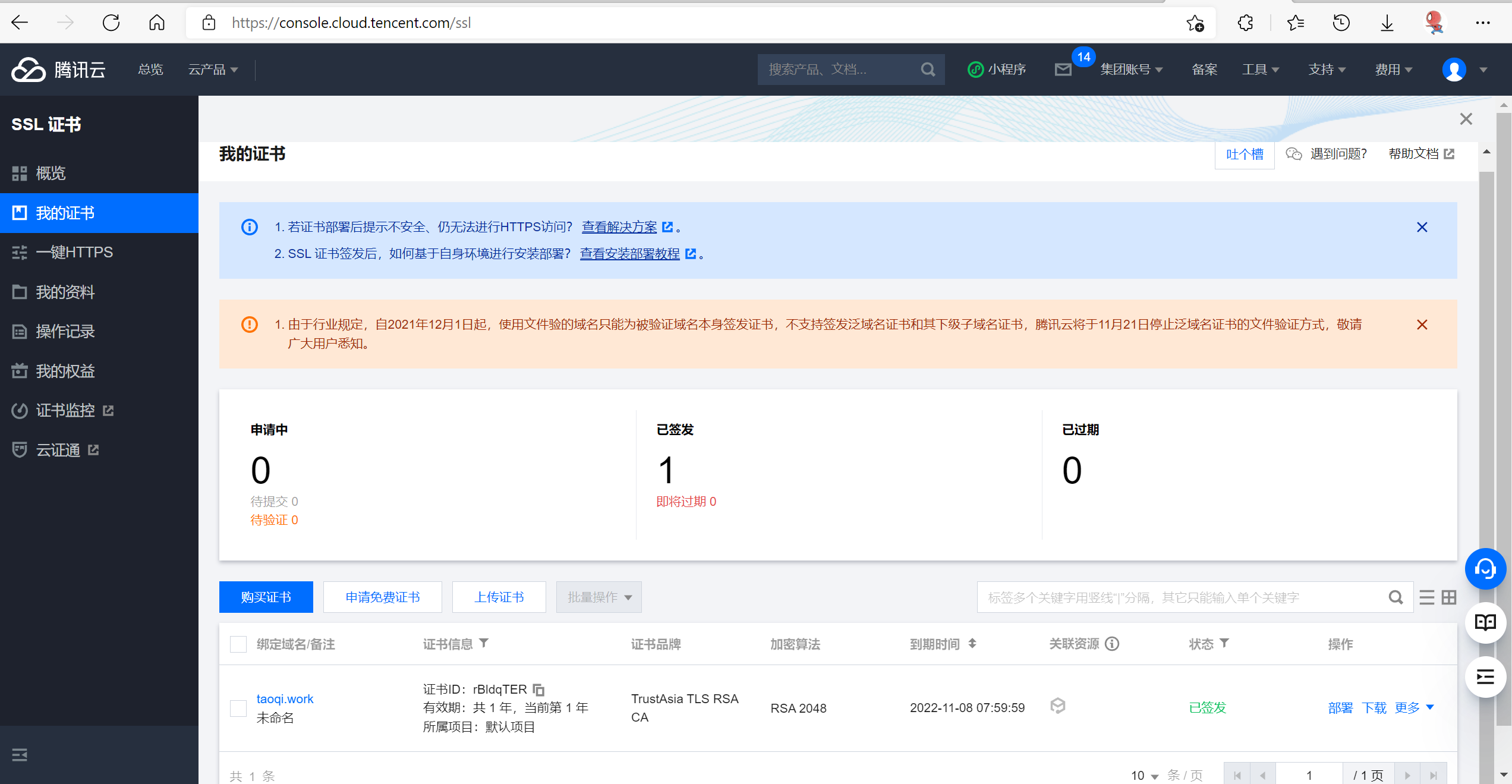 获取SSL证书增加网站安全性,点击下载对应的ssl公钥和密钥