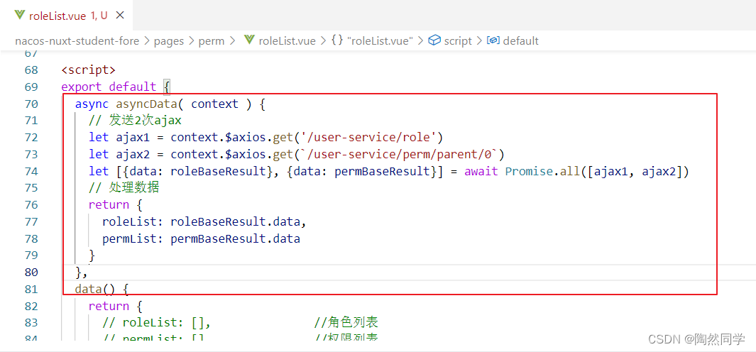 * 编写asyncData发送2次ajax