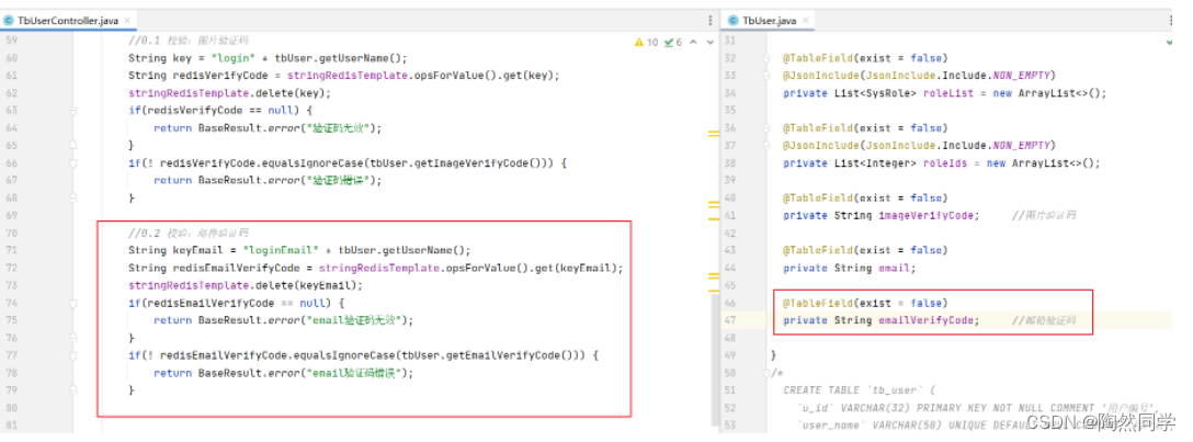 * 用户登录时,校验邮箱验证码
