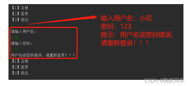 - 用户输入用户名、密码错误,提示用户名或密码错误,请重新登录!!!