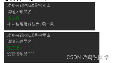- 程序启动时:提示用户输入球员名 根据球员名找到所对应的球队
