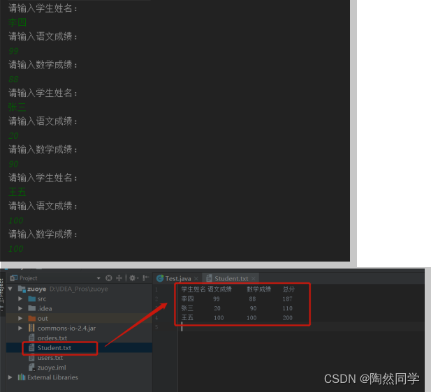 请编写程序,完成键盘录入学生信息,并计算总分将学生信息与总分一同写入文本文件