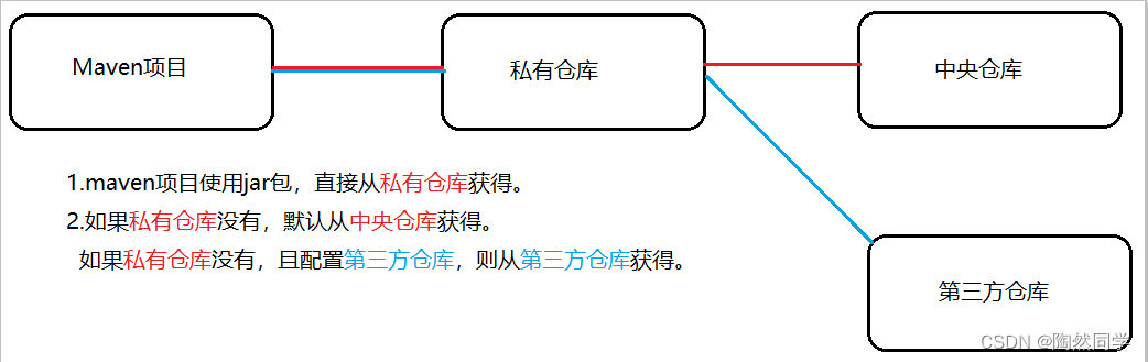 仓库分类:私有仓库、中央仓库、第三方仓库(远程)