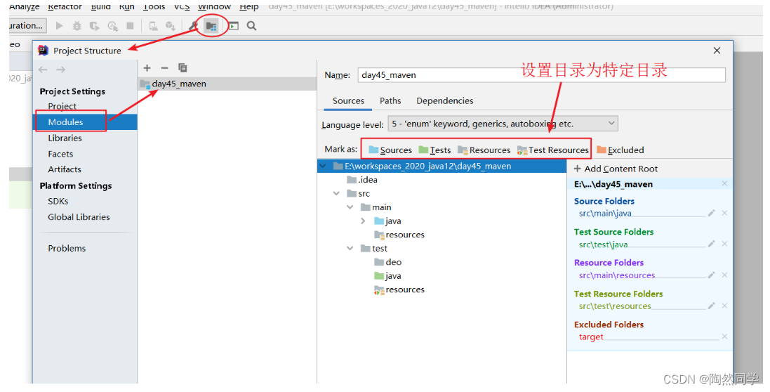 src/test/resources不存在,需要手动创建,如果图标不正确,需要设置-