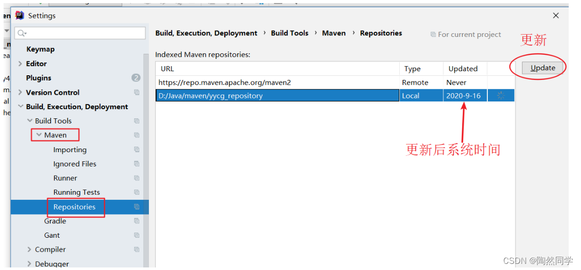 更新仓库目的,让maven更新索引,从而添加坐标时可以进行搜索。
