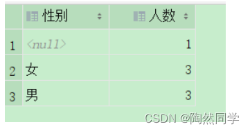 -- 统计表中每种性别有多少人 结果显示 性别和对应的人数