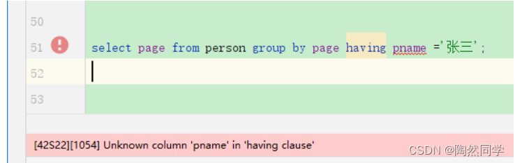 -- 小技巧, having 要添加的条件 必须要确保 分组查询的结果中有对应的字段才 可以